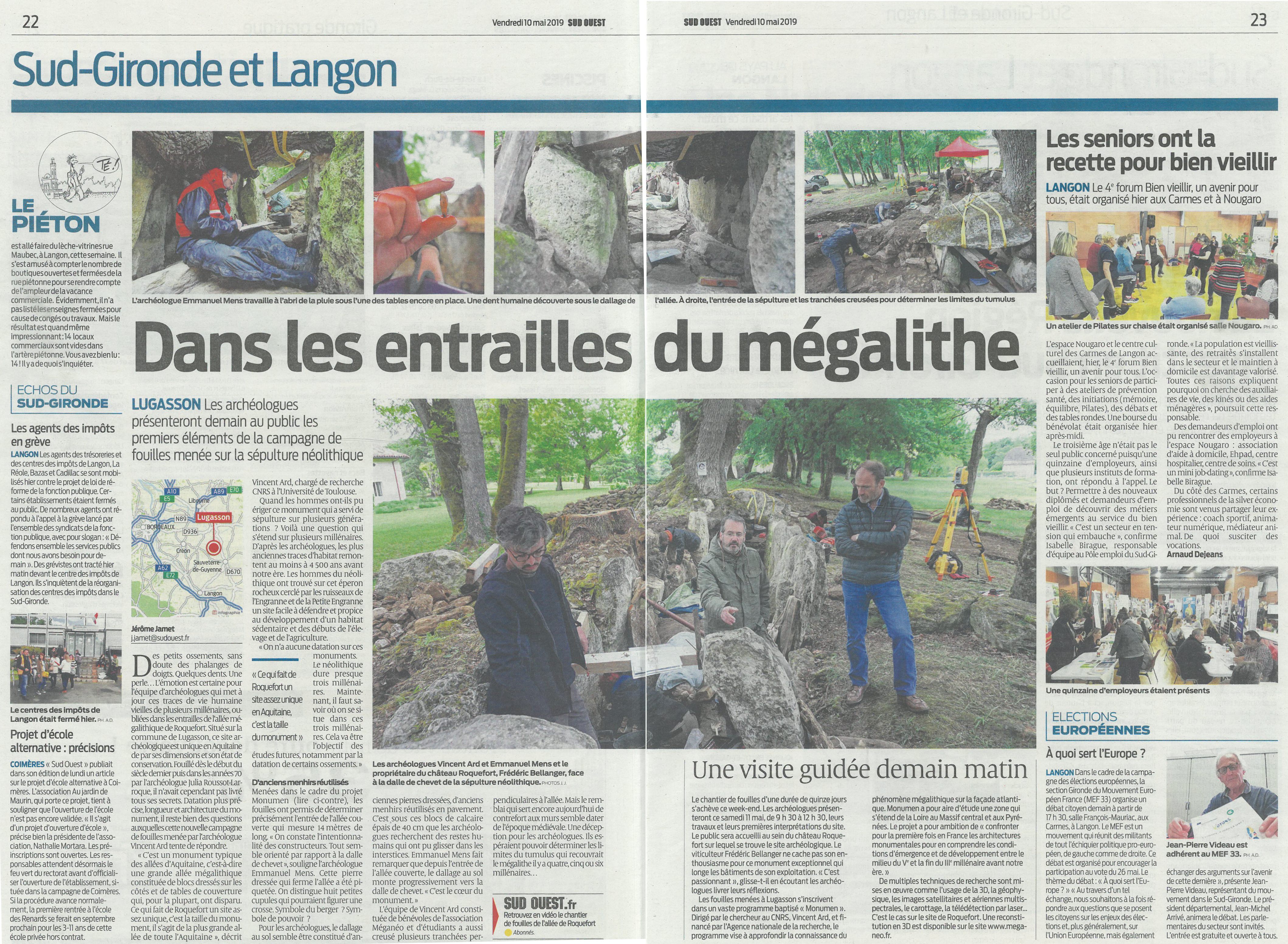 Pendant deux semaines, une partie des membres de l’association ont participés à la fouille de l’allée couverte de Roquefort à Lugasson, sous la direction de Vincent Ard (CNRS, UMR 5608 TRACES).